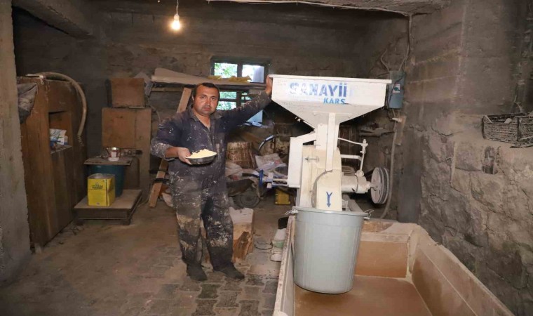 Ardahanlı değirmenci babasından kalan ekmek teknesinde geleneksel yöntemle un öğütüyor.