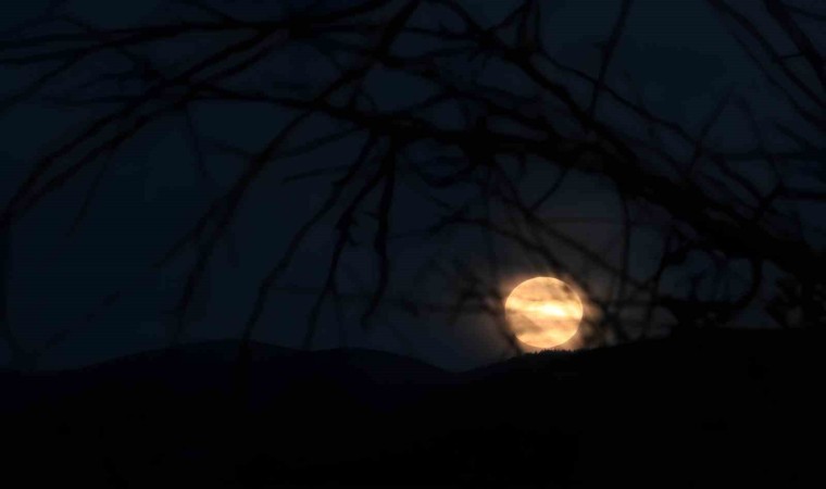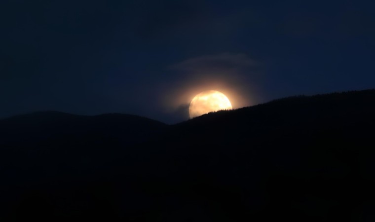 Çankırı-Kastamonu sınırında bulunan Ilgaz Dağı’nda beliren dolunay, kartpostallık görüntüler oluşturdu.