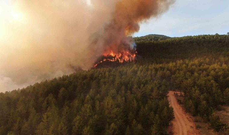 Çankırı’nın Ilgaz ilçesinde çıkan orman yangınına müdahale havadan ve karadan devam ederken, ormanı kaplayan alevler havadan görüntülendi.