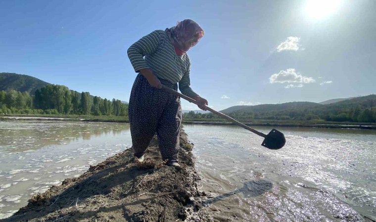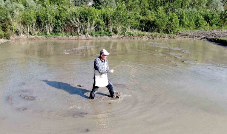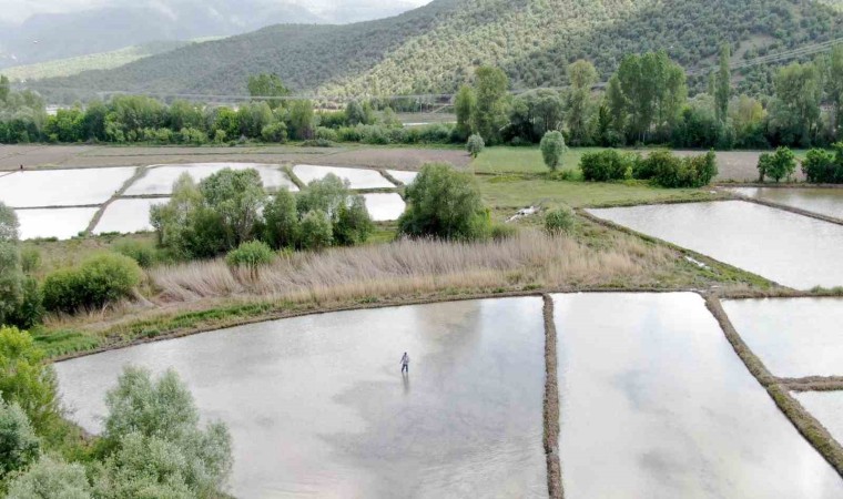 Türkiye’nin önemli çeltik üretim merkezlerinden olan Çankırı’nın Ilgaz ilçesinde, Ilgaz Dağı’nın kar suları ile beslenen tarlalarda çeltik ekimine başlandı. Dizlerine kadar suyun içinde ter döken çiftçiler, Türkiye’nin en kaliteli pirinci olduğunu iddia ettikleri sarıkılçık pirinci için yoğun mesai harcıyor.