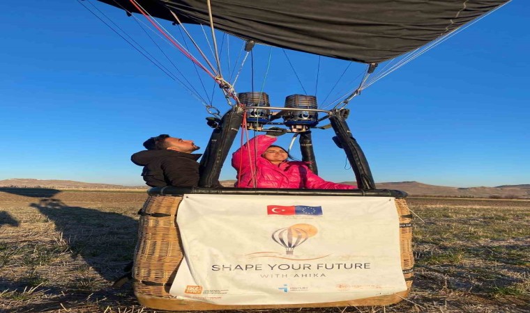 Nevşehir’de Avrupa Birliği ve Türkiye Cumhuriyeti tarafından finanse edilen "Shape Your Future with AHIKA" balon pilot eğitimine katılan Seval Çakır, ilk kez kendi uçurduğu balona bindi.