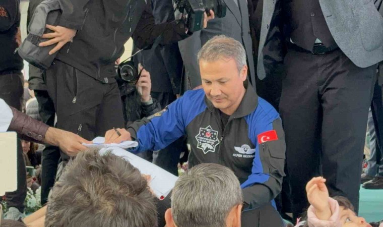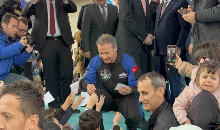 Alper Gezeravcı, astronotluğa başvuru süreci ve aldıkları eğitimler ile ilgili konuşmasını sürdürmesinin ardından gençlerle hatıra fotoğrafı çektirdi.