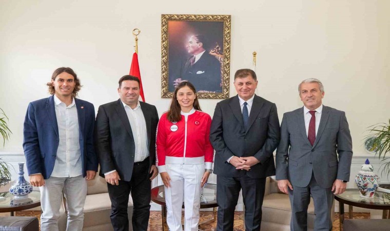 İzmir Büyükşehir Belediye Başkanı Dr. Cemil Tugay, Okyanus Yedilisi adı verilen dünyanın en zorlu yedi kanalından beşini yüzerek geçen ilk Türk kadını Bengisu Avcı’yı başarılı Molokai geçişi sonrasında makamında ağırlayarak tebrik etti.