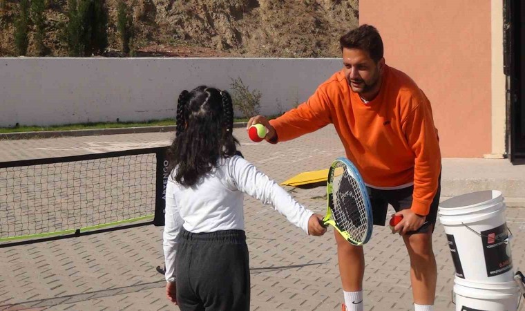 Balıkesir’in Bandırma ilçesine bağlı Çalışkanlar Mahallesinde ilkokulda okuyan öğrenciler, AK Parti Bandırma İlçe Teşkilatı’nın geliştirdiği proje kapsamında ilk kez tenis ile tanıştı.