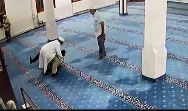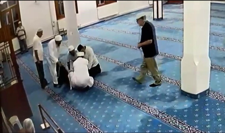 Görüntülerde akli dengesi yerinde olmadığı öne sürülen şahsın bıçakla kendine zarar vermeye çalışması, cami imamının olaya müdahale ederek şahsı kurtarması ve vatandaşların yardımıyla elindeki bıçağın alınması yer alıyor.