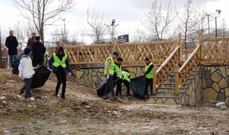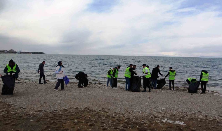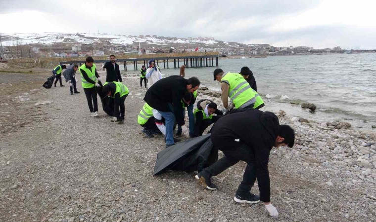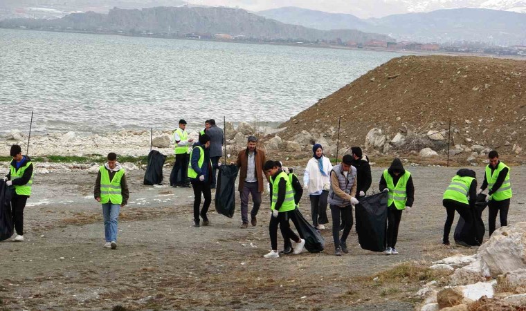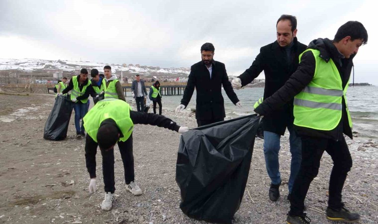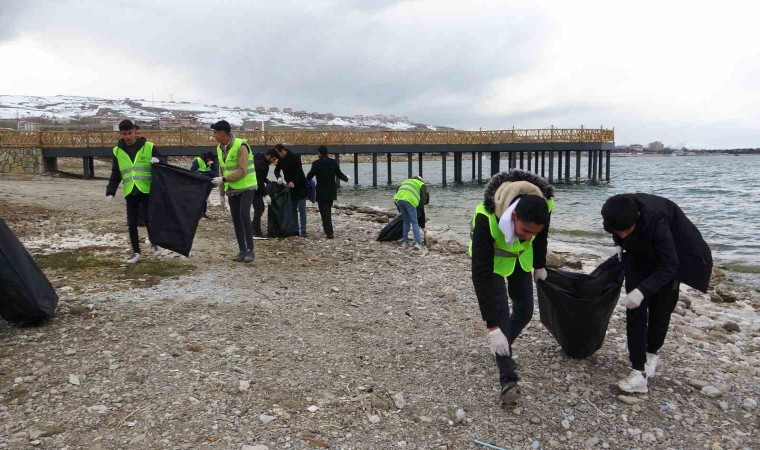 Van’ın Edremit ilçesinde lise öğrencileri, çevre temizliğine dikkat çekmek amacıyla Van Gölü sahilini temizledi.