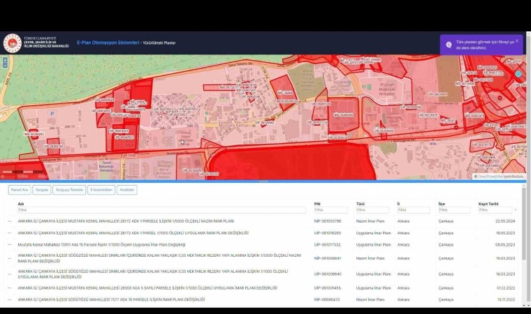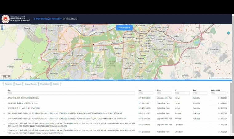 Çevre, Şehircilik ve İklim Değişikliği Bakanlığı’nın sosyal medya hesabından yapılan açıklamada, “E-Plan Otomasyon Sistemi uygulamamız ile vatandaşlarımızın tüm imar planlarına erişimini tek tıka indirdik” denildi.