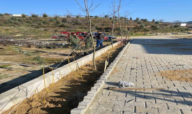 Alemşahlı Mahallesi Muhtarı Ahmet Ur önderliğinde imece ile yapılan Özgür Ulu Sağlık Evinin bahçesine taş döşeme ve çok sayıda çiçek, zeytin ve çam ağacı dikilerek çevre düzenlemesi de tamamlandı.