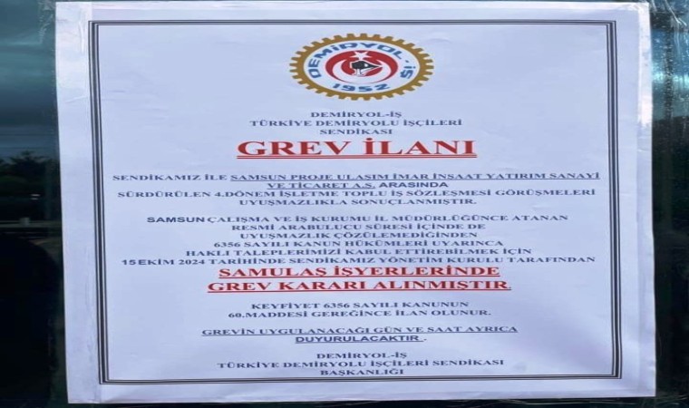 Büyükşehir Belediyesi SAMULAŞ ile Türkiye Demiryolu İşçileri Sendikası’nın (Demiryol-İş) sürdürdüğü toplu iş sözleşmesi görüşmelerinde anlaşma sağlandı. Sendika, SAMULAŞ’ta grev kararı alındığını duyurduktan 7 gün sonra bu kez de imzaların atılarak grevin sonlandırıldığını bildirdi.