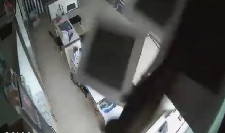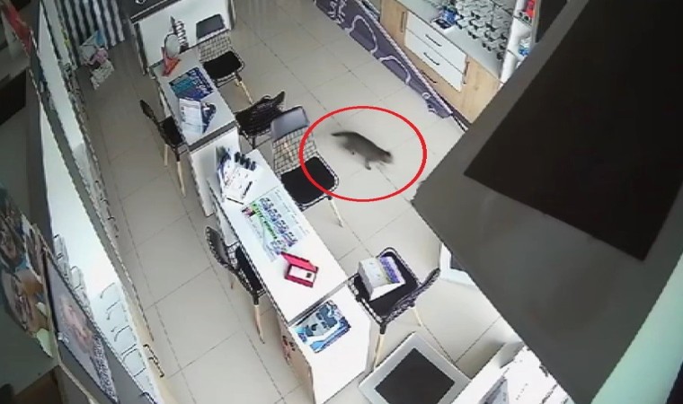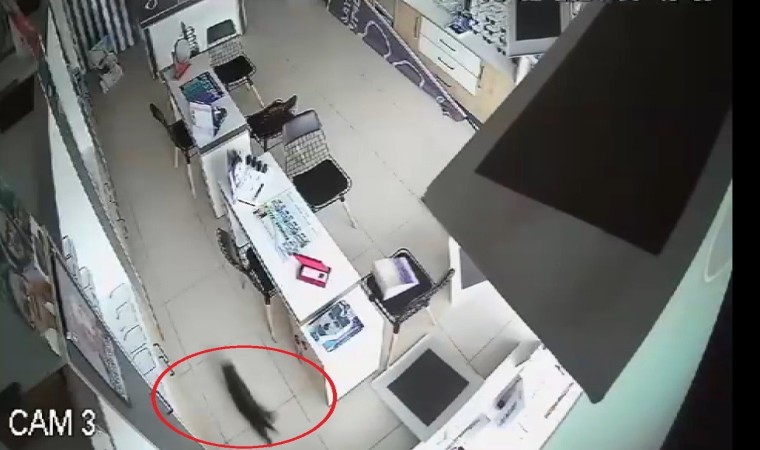 Bursa’da çöken gözlükçü tavanından aşağı kedi düştü. Düşen kedinin korku dolu anları güvenlik kamerasına yansıdı.