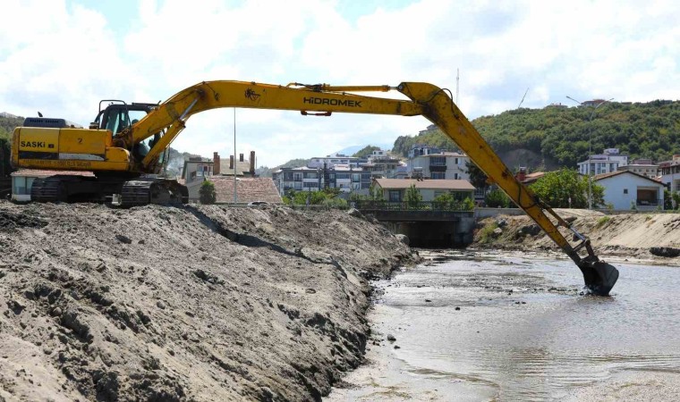 Atakum ilçesine bağlı Yalı Mahallesinde 4 bin 500 metre uzunluğundaki İncesu Deresi’ne geçen ekipler, önce derenin denizle bağlantı kısmını rehabilite etti. Suyun denize ulaşmasını engelleyen çakıl ve kum birikintilerini paletli iş makinesiyle ortadan kaldıran SASKİ ekipleri, ardından daha önce bin 200 metresi ıslah edilen derede temizlik çalışmalarına başladı. Burada yağmurların taşıdığı alüvyonlar ile dibe çöken tonlarca teressübat, kamyonlara yüklenerek ruhsatlı depolama alanlarına gönderiliyor.