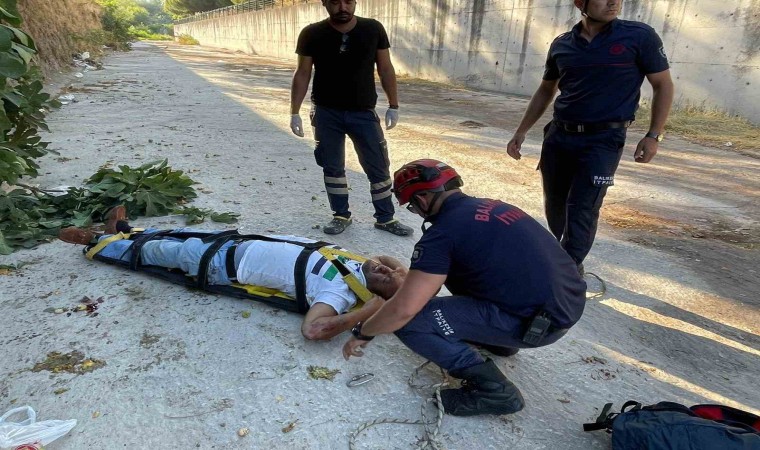 Olay, Karesi ilçesinde bulunan Başçeşme mezarlığı kenarında bulunan dere içinde ki yemiş ağaçlarından olgunlaşan incirleri toplamak için çıkan Servet Çağlak dal kırılması sonrası beton zemine çakıldı. Düşme sonrası olay yerine gelen İtfaiye müfreze ekipleri düşen şahsı sedyeye bağlayarak, dereden çıkardılar. İncir ağacından düşen Servet Çağlak’ın vücudunda çeşitli kırıklar oluştuğu itfaiye ekiplerince 112 Sağlık ekiplerine teslim edilerek, hastaneye sevk edildi.
