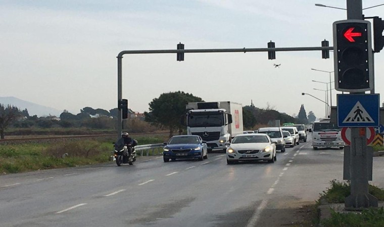 Trafik Denetleme Şube Müdürlüğü ve İnsansız Hava Araçları Büro Amirliği’ne bağlı İHA operatörleri tarafından Aydın-İzmir karayolu üzerinde bulunan Kazak Kahvesi mevkii önündeki trafik ışıklarında havadan drone destekli trafik denetimi yapıldı. Drone ile ekipler, emniyet kemeri takmayan, telefonla araç kullanan ve ışık ihlal eden sürücüleri tespit etti. Kurallara ihlal eden sürücüler, İncirliova ilçesinin girişinde bulunan uygulama noktasında durdurulup hakkında işlem yapıldı.