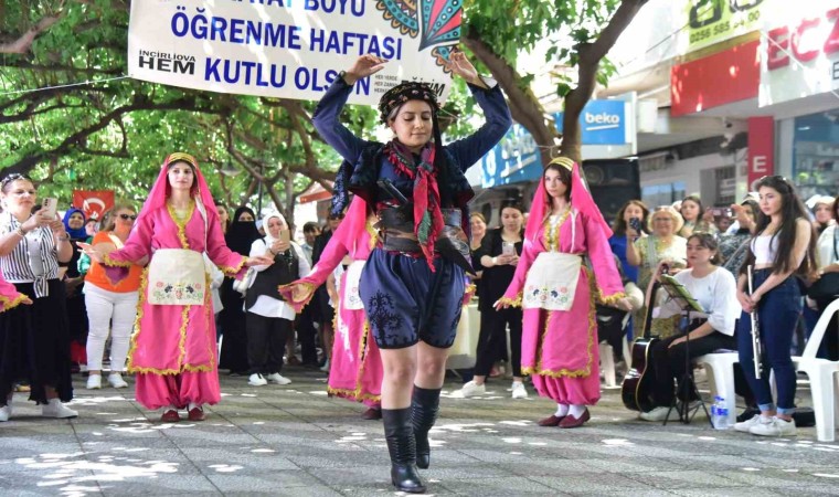 Kursiyerler ve usta öğreticiler, Hayat Boyu Öğrenme Haftasında İncirliova Sevgi Yolunda stant açıp yaptıkları çalışların tanıtımını ve satışını gerçekleştirdi. Sergide su kabakları, nakış, iğne oyası, kanaviçe, tel kırma, çanta, balkon süsleri, tablolar, filografi tablo, çantalar ve dekoratif ürünler yer aldı. Vatandaşlar beğendiği ürünleri satın aldı.