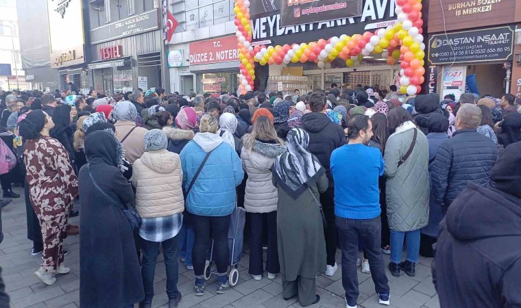 Düzce(İHA) – Düzce’de yeni açılan ve ilk güne özel kampanya düzenleyen mağazanın önü miting alanına döndü. Ucuz olduğu söylenen ürünleri almak isteyen vatandaşlar mağaza önünde yoğunluk oluştururken zaman zaman tartışmalarda yaşandı.