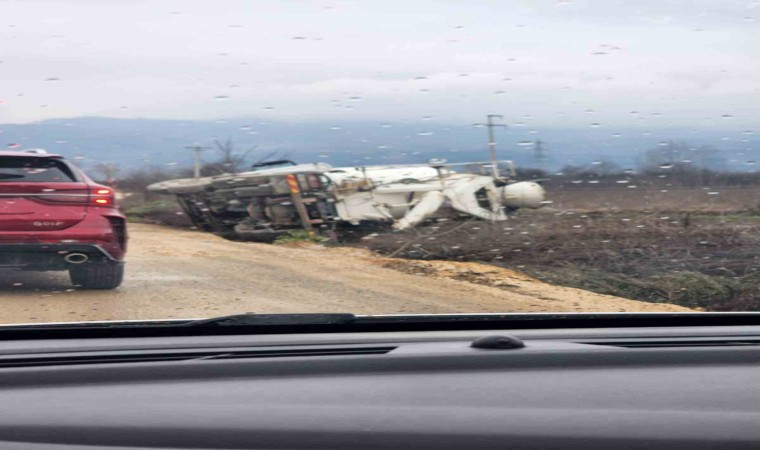 Bursa’nın İnegöl ilçesinde kontrolden çıkıp devrilen beton mikserinin sürücüsü yaralandı.