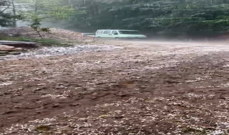 Bursa’nın İnegöl ilçesi Mezit Boğazı mevkiinde aniden bastıran sağanak yağış yerini doluya çevirdi. O anlar amatör kameraya yansıdı.