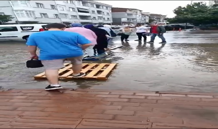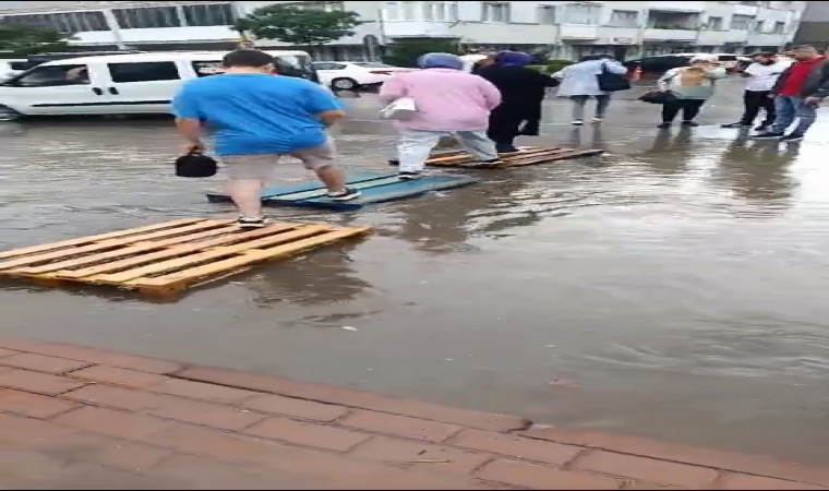 Bursa’nın İnegöl ilçesinde aniden bastıran sağanak hayatı adeta felç etti.