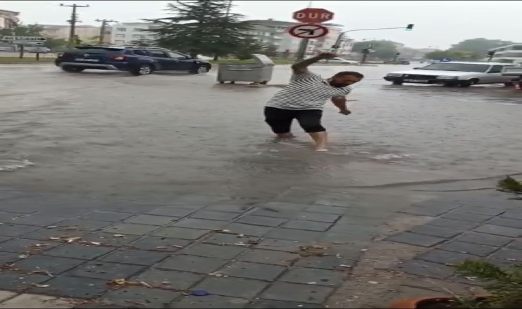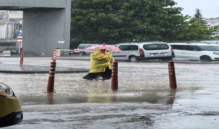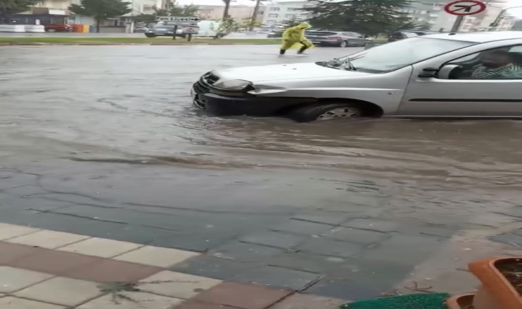 İnegöl ilçe merkezinde etkili olan sağanak sokak ve caddeleri göle çevirdi. Hazırlıksız yakalanan bazı vatandaşlar yağmurdan korunmak için binaların saçakları altına sığınırken, sürücüler de zor anlar yaşadı.