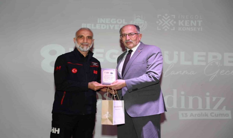 Konuşmanın ardından gecenin onur konuğu olan siyasetçi, cemiyet insanı, kanaat önderi, sporcu, doktor, sanatçı, akademisyen, STK temsilcisi ve gazeteci olarak kendi alanlarında önemli çalışmalara imza atmış, İnegöl’de doğmuş ve yaşamış ya da İnegöl’e hizmet etmiş 19 isim tek tek sahneye çağırılarak plaket ve hediye takdimleri gerçekleştirildi. 19 isim, özgeçmişleri okunduktan sonra kısa birer konuşma da yaptılar. Burada adeta İnegöl’ün hatıraları da canlanmış oldu.