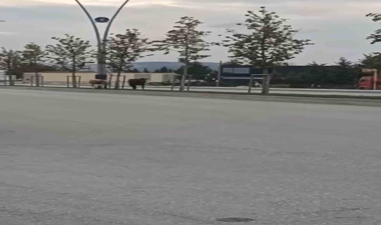 Bursa’da başıboş 2 inek, orta refüjde otladı. O anlar kameraya yansıdı. Sürücüler trafiğin tehlikeye atılmaması için hayvanların sahiplerine çağrıda bulundu.