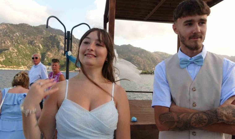 En yakın arkadaşlarının nikahlarına şahitlik ettiği, 5 yaşından bu yana Marmaris’e tatile gelen 20 yaşındaki gelin Katey Smith-Jackson ve 5 yıldır arkadaşlık yaptığı 23 yaşındaki damat Jake Jackson ,"birbirimizi çok seviyoruz, ilk defa birlikte tatile çıktık ve bu anı bu şekilde kutlamak istedik. Bizim için çok güzeldi, çok sevdiğimiz Marmaris’te deniz kenarında hayalini kurduğumuz gibi bir düğün oldu" şeklinde konuştular.