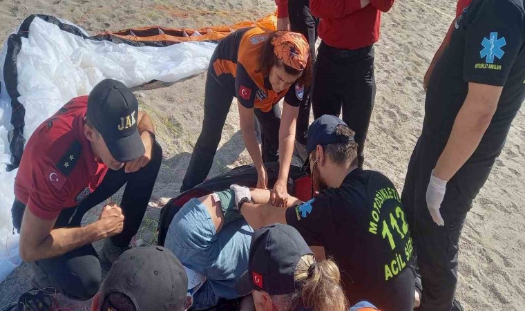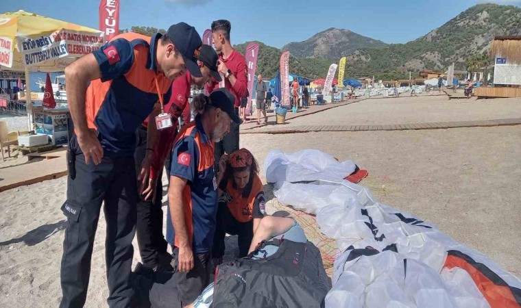 Muğla’nın Fethiye ilçesinde Belcekız plajına sert iniş yaparak yaralanan İngiliz paraşütçünün yardımına jandarma ekipleri yetişti.