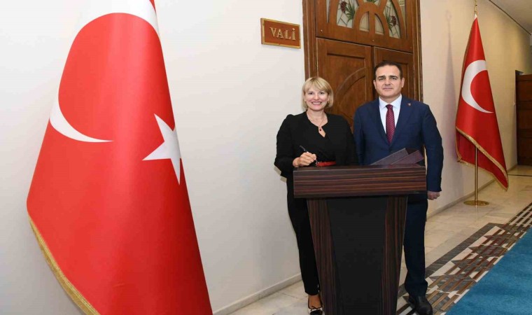 Ziyarette Valilik şeref defterini imzalayan Büyükelçi Jill Morris, dönem dönem belli bölgelerde belli kurumları ziyaret ederek bu bölgelere gelen İngiliz vatandaşların güvenli bir şekilde tatil yapmaları ve ayrılmaları, hem de yapılacak çalışmaları koordine etmek için görüşmeler sağladıklarını dile getirdi.