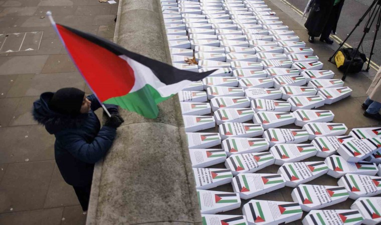 İsrail’in Gazze Şeridi’ne yönelik saldırıları, İngiltere’nin başkenti Londra’da protesto edildi. Başkentte toplanan Filistin yanlısı grup, İsrail saldırılarında öldürülen Filistinli çocukların anısına Başbakanlık Konutu’nun bulunduğu sokağın dışına 450’den fazla sembolik çocuk tabutu bırakarak, İsrail’in Gazze Şeridi’ne yönelik saldırılarını protesto etti.