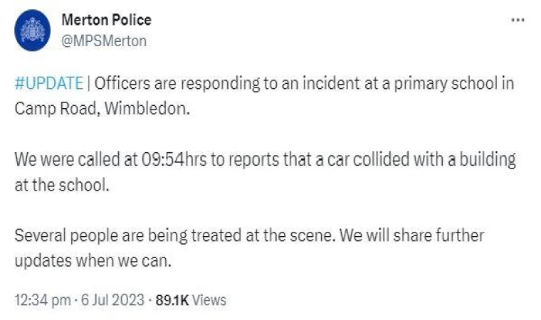 Wimbledon bölgesindeki Camp Caddesi'nde meydana gelen olay, ilkokula yönelik bir otomobil saldırısı olarak yaşandı. Merton Semti Polis Departmanı tarafından yapılan açıklamada, olay yerinde bulunan birkaç kişinin tedavi edilmekte olduğu ve gelişmelerin paylaşılacağı belirtildi. Ayrıca Londra İtfaiyesi ve Londra Ambulans Servisi'nin de olay yerine ulaştığı ifade edildi.