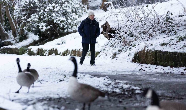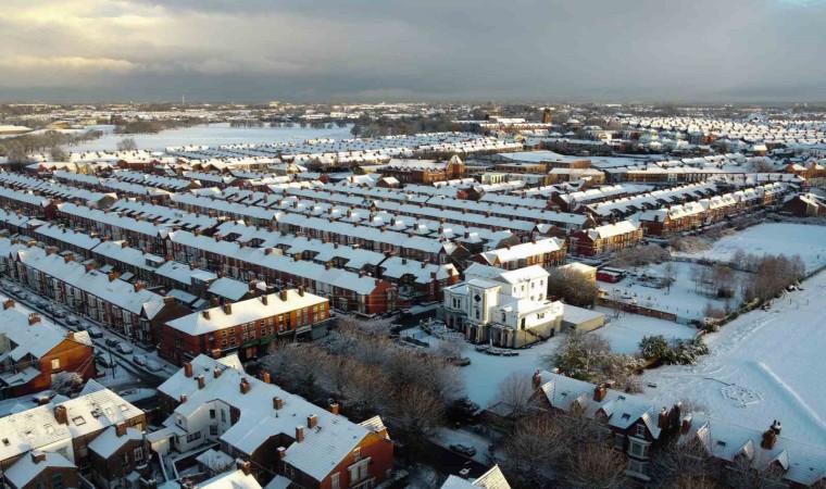 İngiltere’nin kuzeybatısında etkili olan kar yağışı nedeniyle sokaklar beyaz örtüyle kaplanırken, en az 37 okulda eğitime ara verildi.