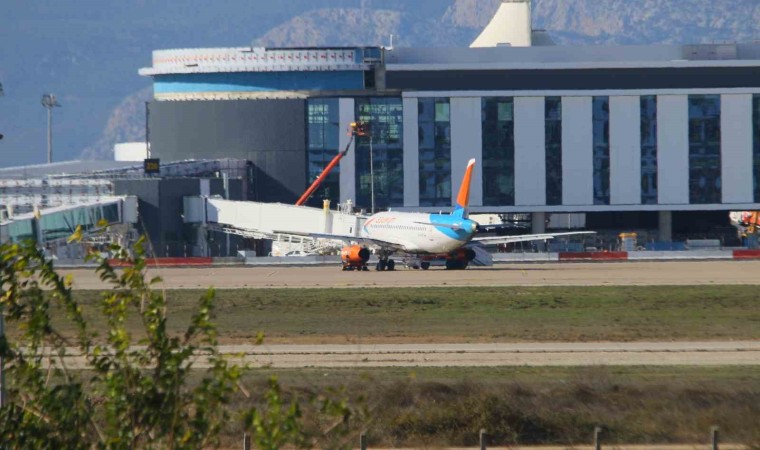 Antalya Havalimanı’na inişi sırasında motoru yanan ve panik anlarının yaşandığı Azimuth Airlines’a ait SU95 tipi yolcu uçağı, Antalya Havalimanı 2’nci Terminal’deki park noktasına alınmasıyla, uçuş trafiği sabah saatlerinde normale döndü.