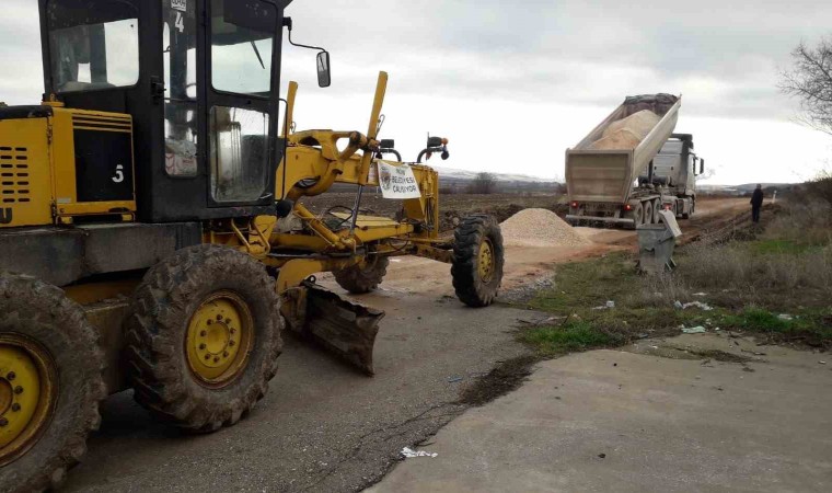 İnönü Belediyesi, havaların iyi gitmesini fırsata çevirerek kırsal alanlardaki yol çalışmalarını sürdürüyor.