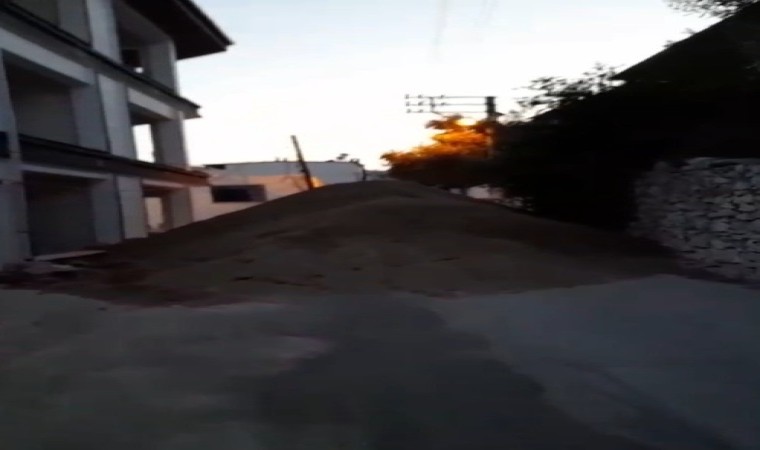 Muğla’nın Milas ilçesinde bir inşaat alanında kullanılmak üzere getirilerek sokağa dökülen kumlar sokağın giriş ve çıkışını kapatırken, adeta vatandaşları da sokağa hapsetti.