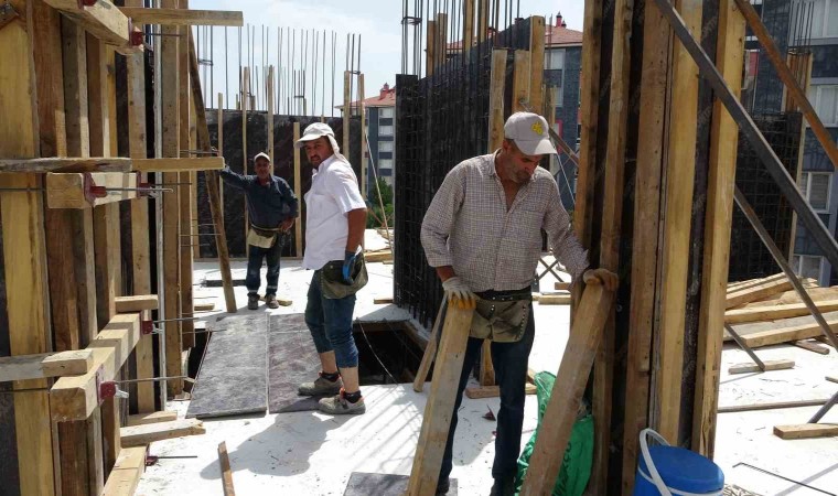 Sıcak havaya rağmen ailelerinin geçimini sağlamak için tuğla taşıyan, sıva yapan, beton döken, demir bağlayan ve tesisat döşeyen inşaat işçileri, yüksek hava sıcaklıklarında kimi zaman 10 saat çalışıyor.