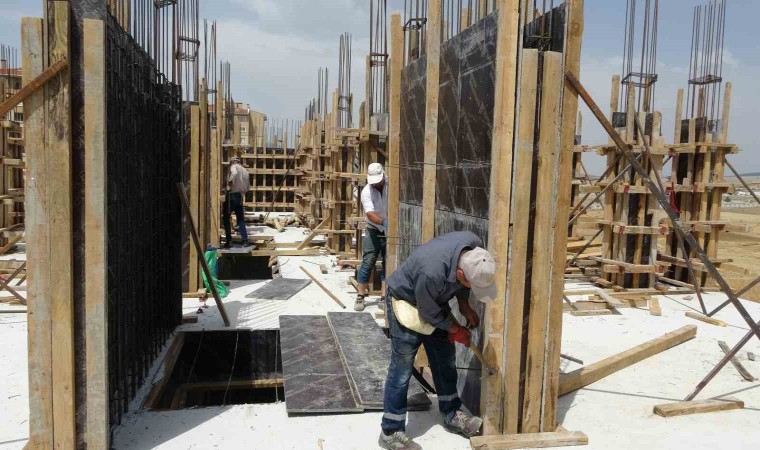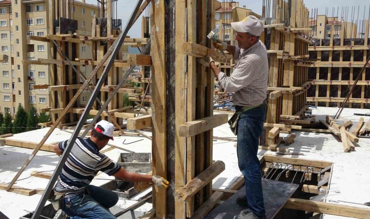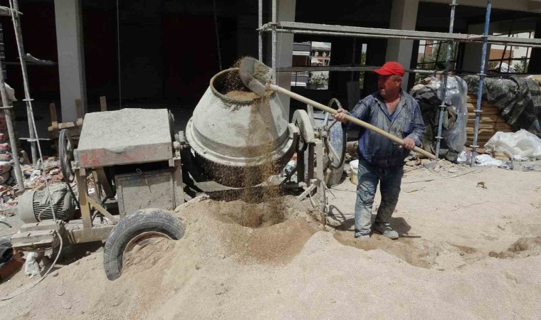 Kütahya’da inşaat işçileri, sıcak havaya rağmen zorlu mesailerini sürdürüyor.