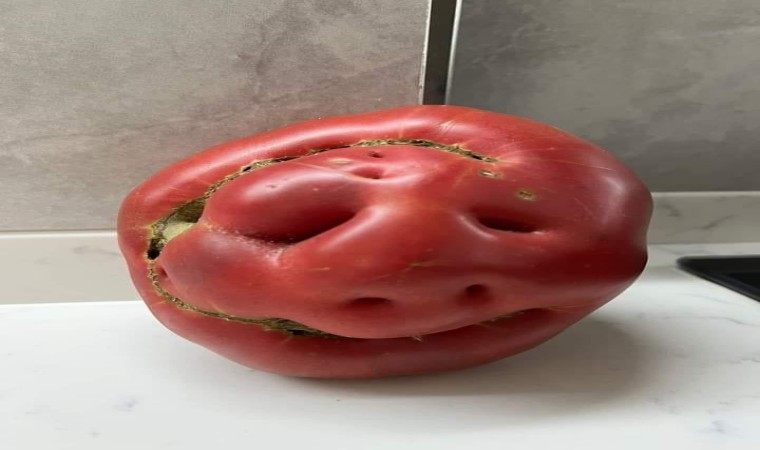 Elazığ’ın Baskil ilçesinde yaşayan Şano Baydemir, tarlasından kahvaltı için kopardığı domatesinin şeklini değişik olduğunu fark etti. Eve getirip domatesi incelediğinde domatesin iki göz, burun ve ağız şeklini alarak insan yüzüne benzediğini gördü. Sosyal medyada paylaşılan domates binlerce beğeni aldı.