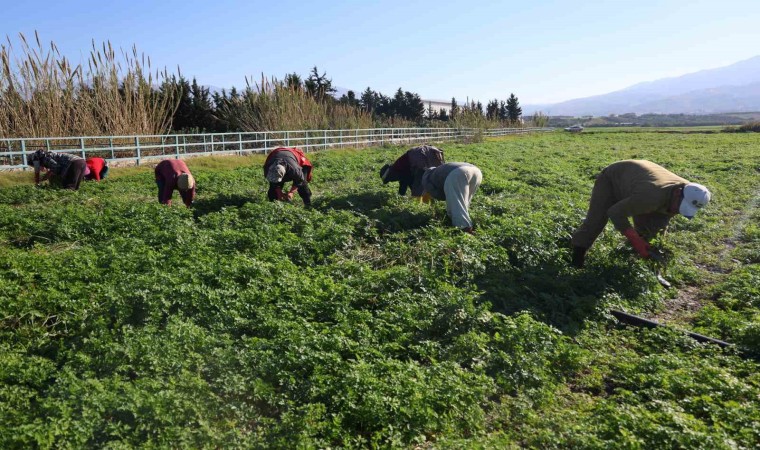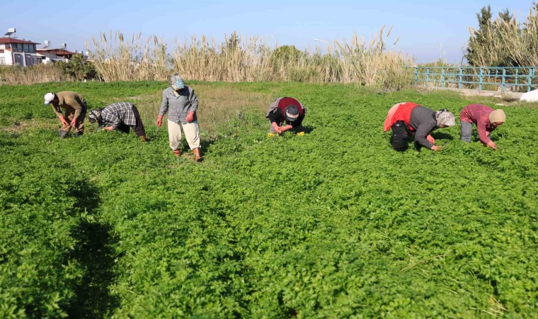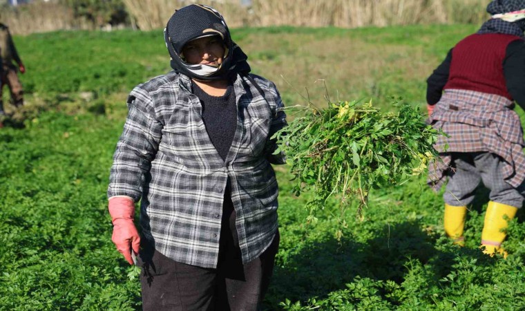 Kahramanmaraş merkezli depremlerde en çok hasara uğrayan Hatay’da, bütün olumsuzluklara rağmen önemli tarım şehirlerin arasında yer alıyor. Sahip olduğu hava şartlarından dolayı tarımsal ürün çeşitliliği fazla olan Hatay’da, maydanoz üretiminde önemli bir yere sahip. Maydanoz üretiminde Hatay’ın Arsuz ilçesi, diğer ilçelerden önde geliyor. C vitamini bakımından zengin olan maydanoz, tarladan tezgaha gelene kadar zorlu aşamalardan geçiyor. Bu aşamalar arasında en önemlisi ise zararlı otlardan ayıklama işi.