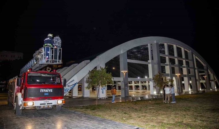 Antalya’da Instagram’a story çekmek için kapalı basketbol sahasının duvarlarına koşarak tırmanan genç, yaklaşık 8 metre yükseklikte mahsur kaldı. Genç adam itfaiye ekipleri tarafından kurtarılırken, o anları kayda alan arkadaşı, ‘Böyle olmayın’ diyerek diğer gençleri uyardı.