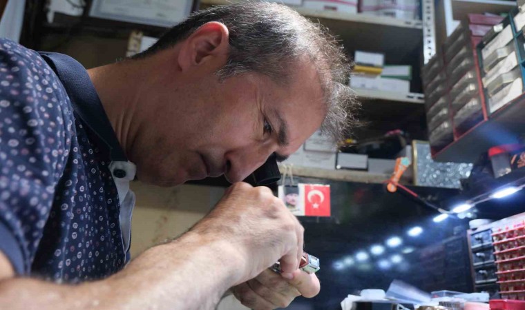 Adana’da küçük yaşlarından bu yana ilgi duyduğu saat tamirciliğini internetten öğrenen 45 yaşındaki Cumali Özdemir, sağlık teknikerliğini bırakıp saat tamirciliğine başladı.