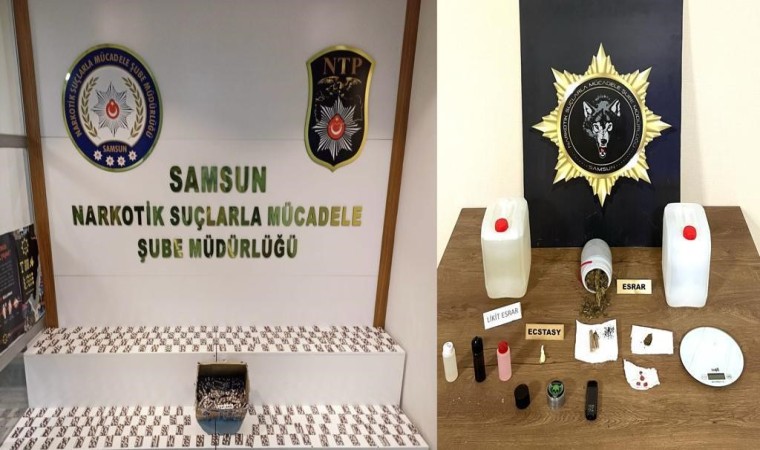 Ayrıca Narkotik Suçlarla Mücadele Daire Başkanlığınca Bafra İlçe Emniyet ve Şube Müdürlüğü ekiplerince 5 bin 249 adet sentetik ecza, 53,28 gram metamfetamin, 6 litre likit esrar, 216,67 gram esrar maddesi, 3,82 gram eroin, 1,46 gram ecstasy tozu, 0,01 gram kokain, 3 adet esrarlı sigara, 2 adet esrar öğütücü, 1 adet hassas terazi, 4 adet uyuşturucu madde kullanımına yarar aparat ele geçirildi. Uyuşturucu madde ticareti yapmak ve uyuşturucu madde kullanmak suçlarından 6 yıl 8 ay, 2 yıl 1 ay ve 2 yıl kesinleşmiş hapis cezası olan 3 şahıs yakalandı.