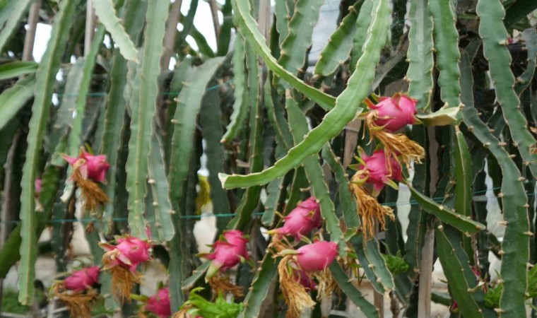 Bilecik’te 210 metrekare serada yılda 5 kere ejder meyvesi hasadı yapan Mehmet Kılıç, taleplere yetişemediğini ve pazar sorunu da olmadığı söyledi