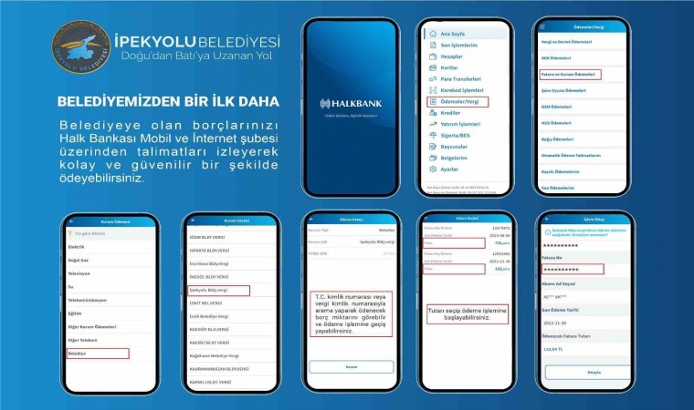 İpekyolu Belediyesinden yapılan açıklamada, belediyecilik hizmetlerinin yanı sıra vatandaşların kolay şekilde hizmetlere erişebilmeleri için tek tuşla vezne işlemlerini mobil internet bankacılığı üzerinden gerçekleştirebileceği belirtildi. Açıklamada, “Bilgi İşlem Müdürlüğü ile ilk olarak Halk Bankası arasında yürütülen projeye istinaden, mobil internet bankacılığı üzerinden ödeme yapmak isteyen vatandaşlar ödemeler/vergi kısmından fatura ve kurum ödemelerini daha sonra belediye butonundan İpekyolu Bldy. Vergi kısmını tercih etmeliler. Ardından TC kimlik no bilgileri girildikten sonra çıkan borç tutarı kadar tutarı seçip onaylayarak ödeme işlemeni online olarak gerçekleştirebilirler. Böylece ÇTV ve emlak borçlarını ödemek isteyen vatandaşlar, belediye hizmet binasına gitmeden, sıra beklemeden saniyeler içerisinde ödemelerini gerçekleştirebilecekler. İpekyolu Belediyesi ilerleyen günlerde farklı bankalarla da çalışmalar yürüterek gelişen ve dijitalleşen dünya karşısında yenilikleriyle ilçe halkına hizmet etmeye devam edecek” denildi.