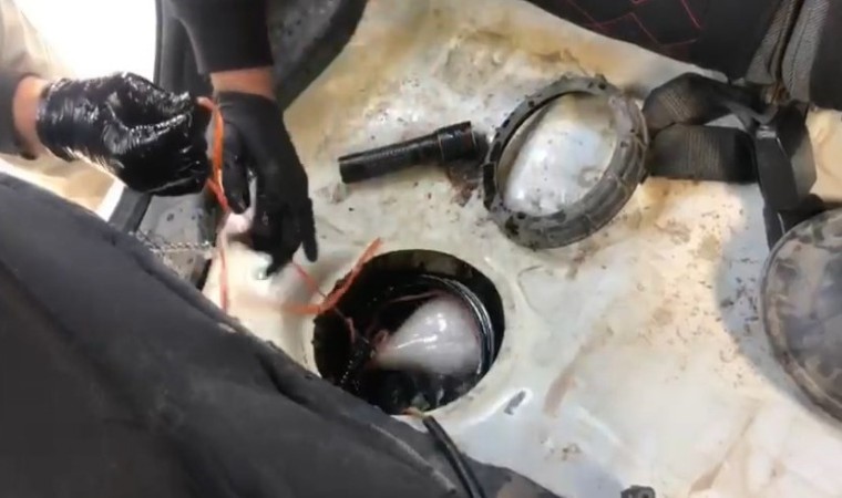 Kuzey Marmara Otoyolu Kocaeli geçişinde narkotik polisinin durdurduğu otomobilde yapılan aramada, aracın yakıt deposu içinde gizlenmiş halde 6 pet şişe içerisinde 5 kilogram 500 gram metamfetamin ele geçirildi. Polisin ipi çektikçe uyuşturucu dolu şişelerin çıkma anları ise kameraya yansıdı.