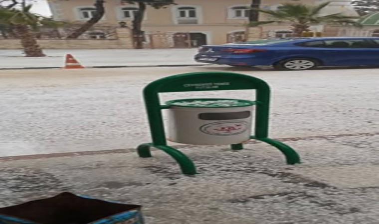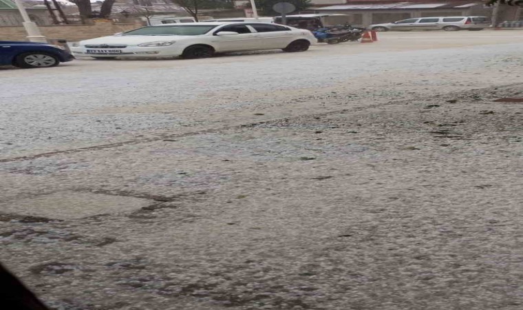 Edirne’nin İpsala ilçesine bağlı Yenikarpuzlu beldesinde aniden başlayan dolu nedeniyle sokaklar beyaza büründü.