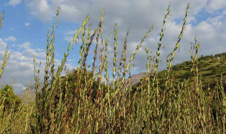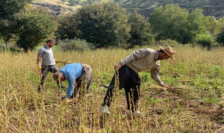 Hakkari’nin Derecik ilçesinde köylüler, imece usulü ile susam hasadına başladı.