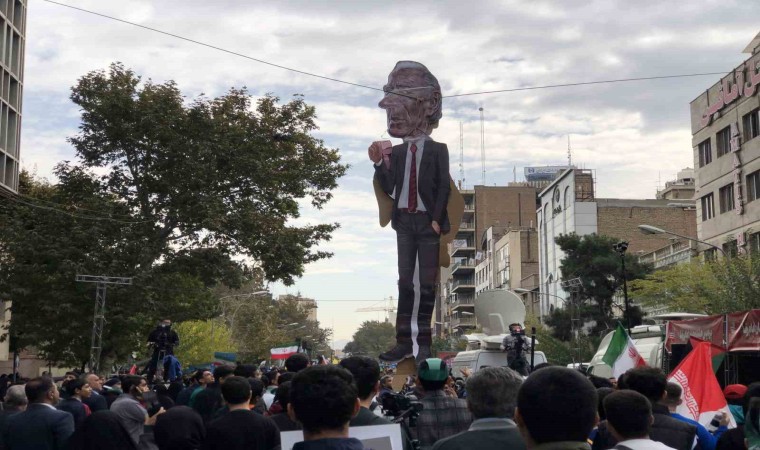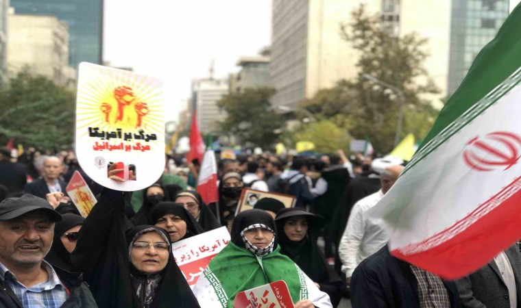 İran’da ABD’nin Tahran Büyükelçiliğinin işgalinin 45’inci yıl dönümü “Dünyadaki şer ekseni ABD” sloganıyla başkent Tahran ve ülkenin farklı kentlerinde düzenlenen gösterilerle kutlandı. Tahran’daki eski ABD Büyükelçiliği önünde toplanan göstericiler, yere çizilen ABD ve İsrail bayraklarının üzerine basarak alana giriş yaptı. Kalabalık, “Kahrolsun ABD”, “Kahrolsun İsrail”, “İsrail’in cinayetleri, ABD’nin cinayetleridir”, “Bugün emperyalizmle mücadele günü” ve "Filistin kazanacak, İsrail yok olacak" sloganları attı. Göstericiler, “ABD’yi ayaklarımızın altına alıyoruz”, “İsrail yok olacak” ve “İntikam, İntikam” yazılı pankartlar taşındı.