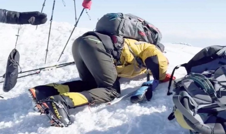 Ağrı Dağı’na çıkmak için tırmanışa geçen İranlı dağcılar, zirveye çıkınca secdeye kapandı.