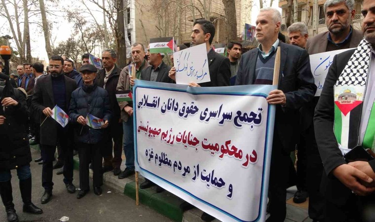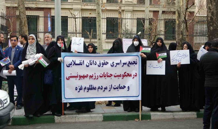 Başkent Tahran’daki gösteri Birleşmiş Milletler (BM) temsilciliği binası önünde düzenlenirken, ülke genelinde 20 bin hukukçu tarafından İsrail’in işlediği soykırımın durdurulması için toplanan imzalar BM temsilciliğine teslim edildi.
