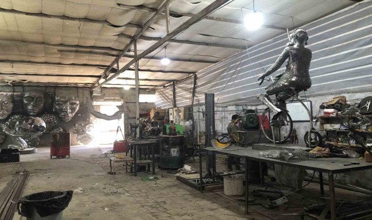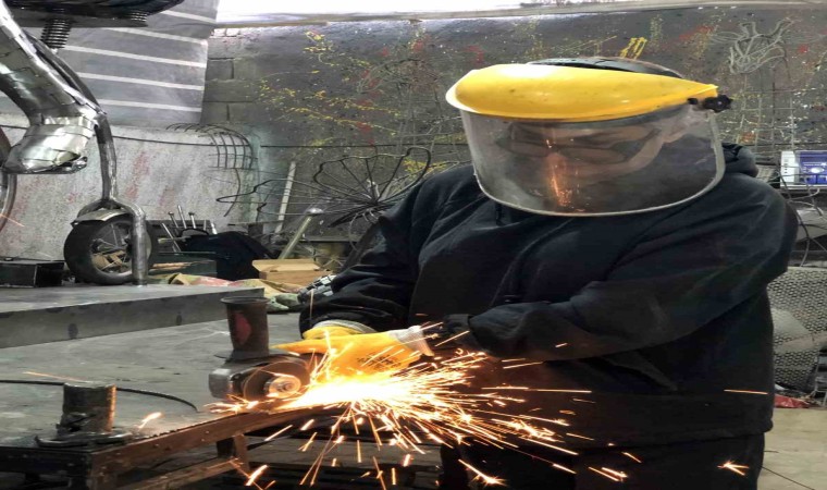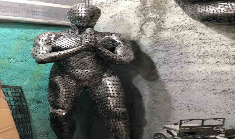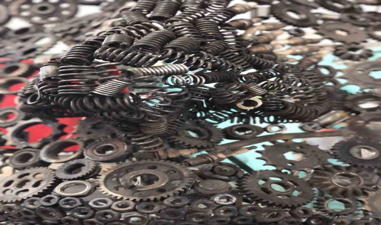 İranlı 47 yaşındaki Meryem Kazemi, 18 yıl boyunca çalıştığı finans müdürlüğünü bırakarak kendi atölyesinde hurda metal, cıvata, somun ve zincir gibi araba parçalarını göz alıcı heykellere dönüştürüyor.